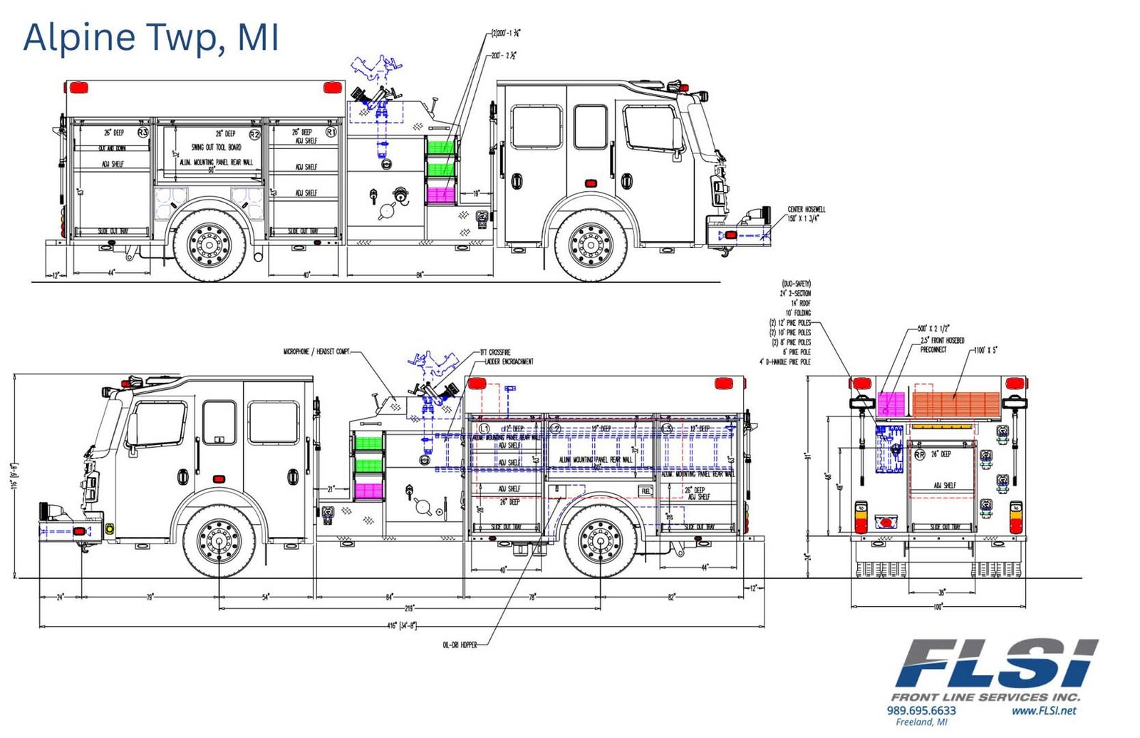 Each truck that Front Line Services delivers is designed and built in close partnership with the department it serves. From the first consultation to final delivery, we customize every detail to meet the unique needs and requirements of each firehouse. Our team works hand-in-hand with communities across Michigan to ensure their trucks are safe, reliable, and ready for the challenges of emergency response. As a trusted provider of firetrucks and rescue vehicles, FLSI is proud to deliver solutions that keep firefighters equipped and their communities protected.
